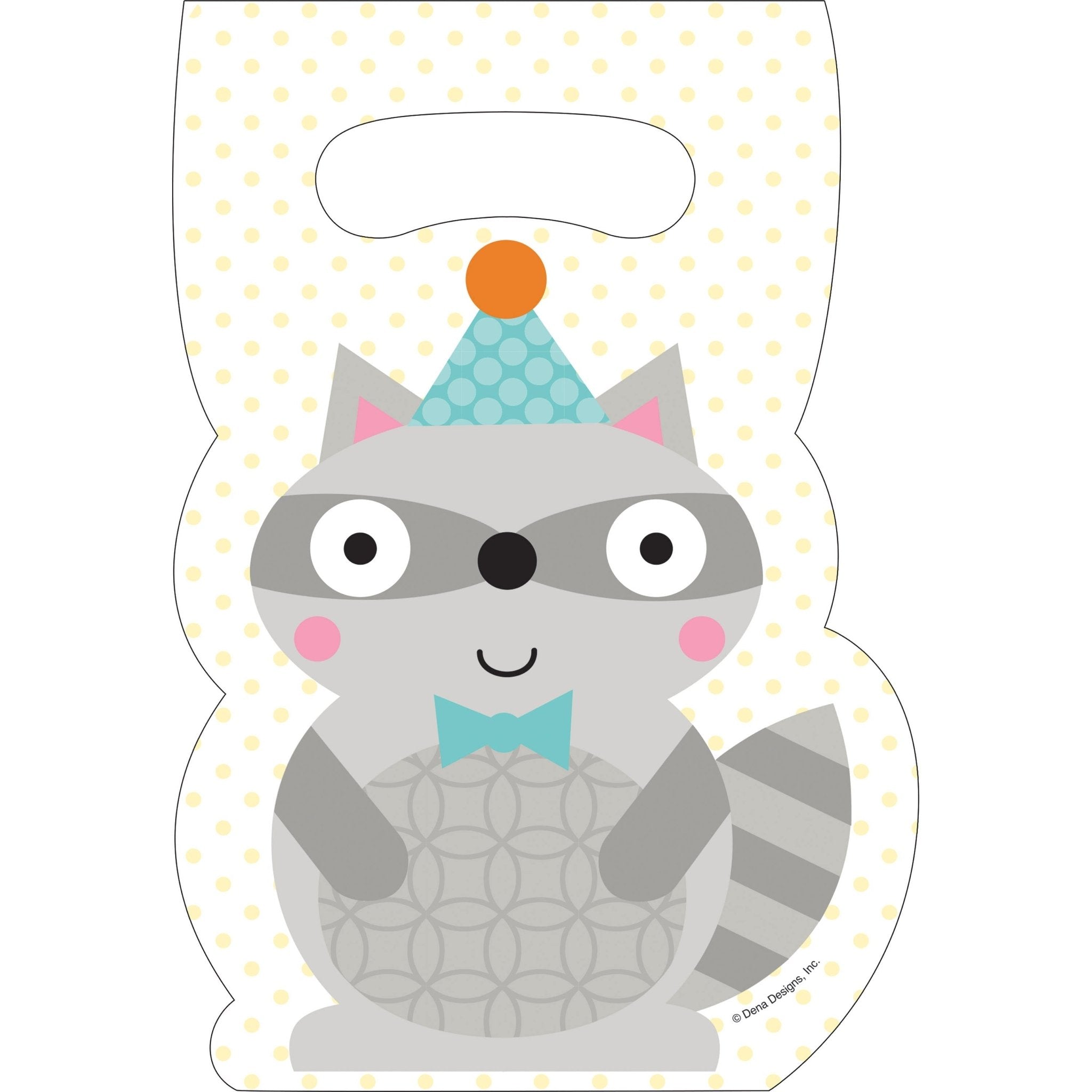 Fill these loot bags with fun party favors and sweet treats as an extra special gift for your woodland party guests! Each bag has a handle, making them easy to carry. These shaped bags have a cute raccoon with a party hat, making them perfect for a woodland animals birthday party or forest animal baby shower!