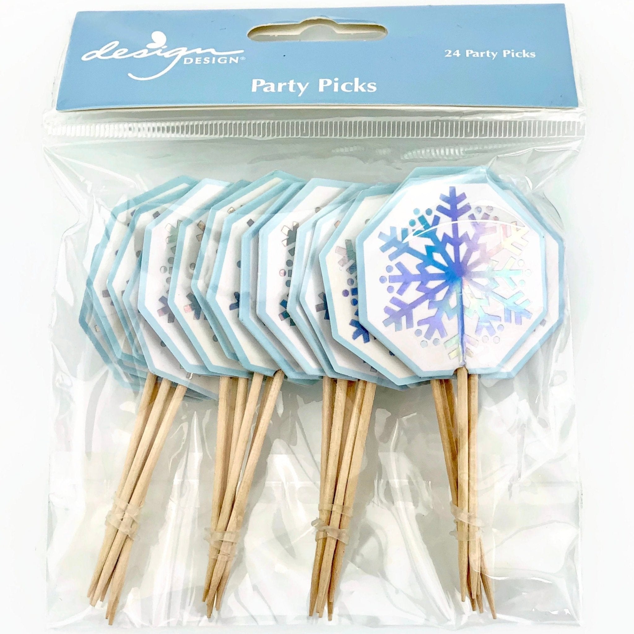 Add a hint of winter cheer to your cupcakes, cheese cubes and appetizers with these beautiful iridescent snowflake toothpick party picks!