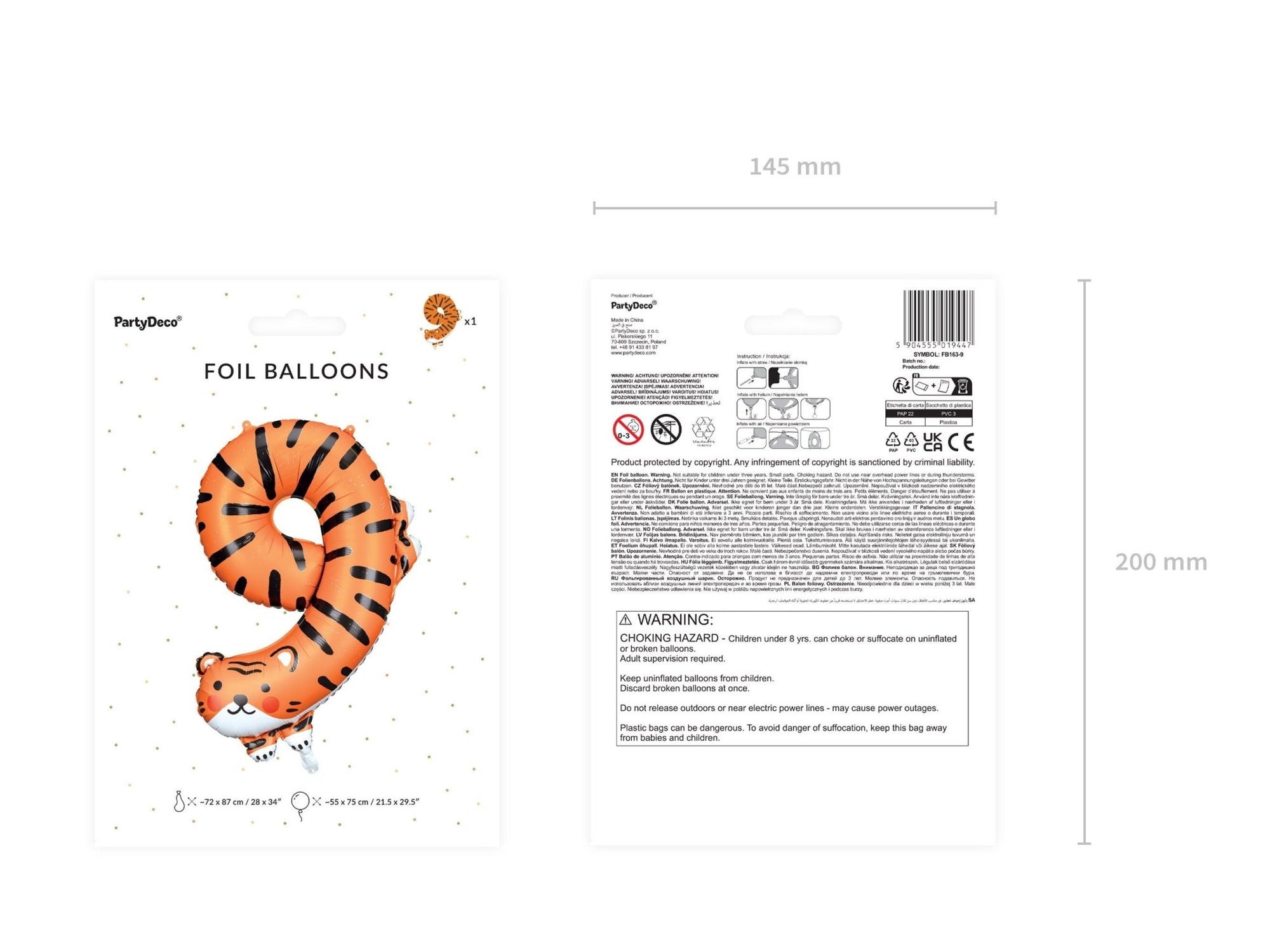 Roar into the celebration with our Tiger 9th Birthday Balloon! Shaped like the number 9 and covered in a bold tiger design, this balloon is perfect for adding a wild touch to your child's birthday party. Ideal for jungle or safari-themed celebrations, this eye-catching number nine balloon will make your kiddo's big day truly unforgettable.