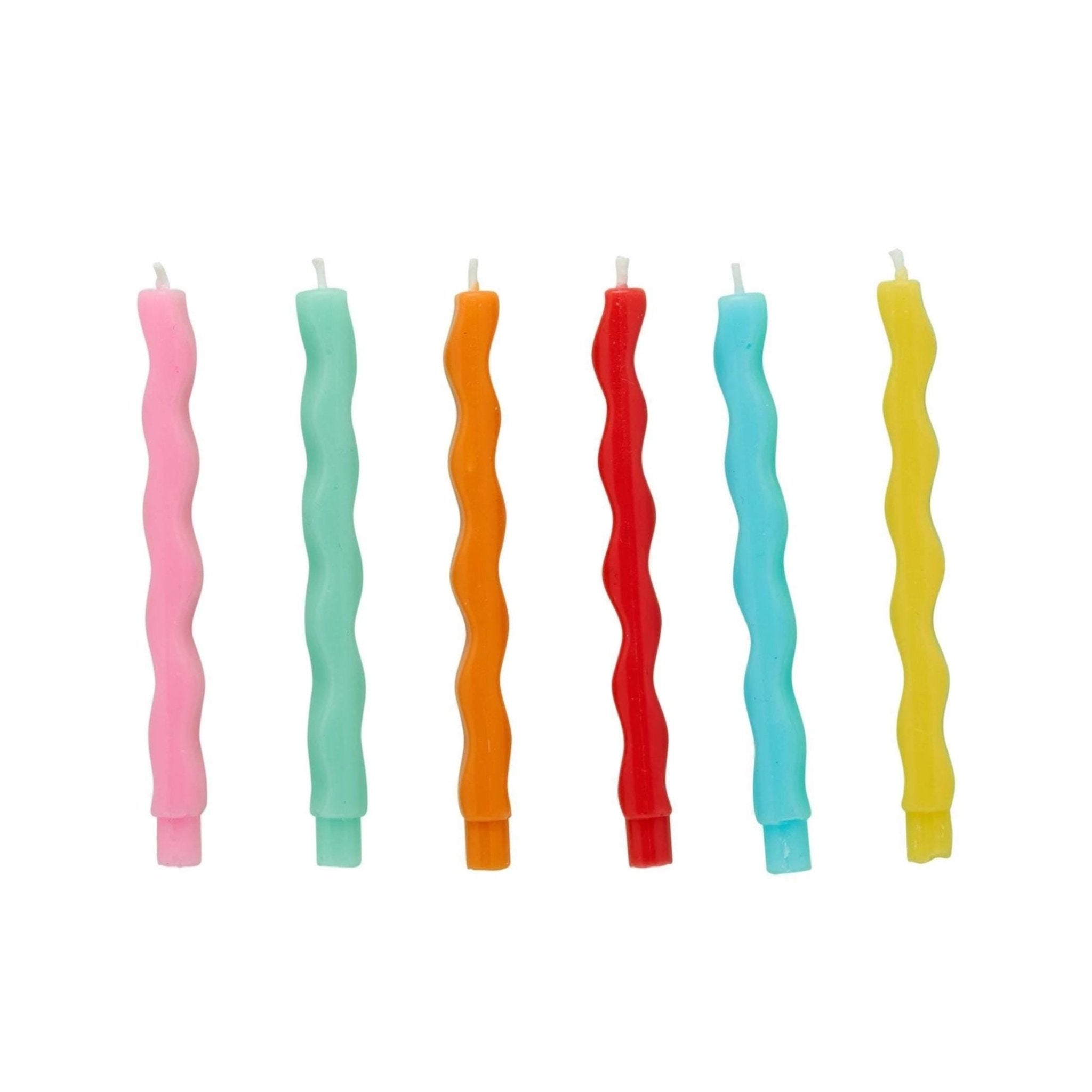 Add a pop of playful color to any cake with this set of 12 wavy wax candles! These vibrant 4-inch tall twist candles come in bold rainbow shades, perfect for groovy themes, colorful birthdays, art parties, or kids’ celebrations. Their unique shape brings extra fun to your party table, whether you’re styling a paint party cake or topping cupcakes for a creative bash.
