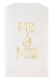 Add a touch of elegance to your wedding favors with our white glassine favor bags featuring gold "Mr & Mrs" lettering. This pack of 8 bags is the perfect size for holding small gifts and measures 4" x 6.5". Order now to add a stylish and personalized touch to your wedding celebration!